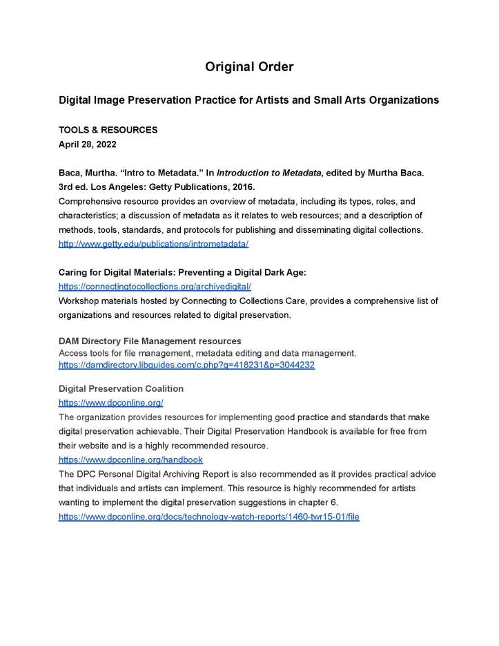 Digital content, unlike traditional analog media (paper records, books, photographs, slides), is especially fragile and requires special proactive care to ensure accessibility and continued use. In this webinar, participants will learn practical skills and methodologies to help establish a practice of digital image preservation such that digital assets in your care are accessible both now and in the future. The class will go over basic archival principles and concepts, discuss the complex nature of digital assets, and explore tools, methods, and best practices for digital image preservation. Participants will walk away with a template to implement a digital preservation practice and resources for further inquiry.
